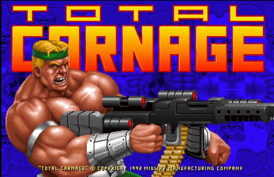 Az 1992-es Total Carnage témája akkoriban elég aktuális volt, a cél egy gonosz Közel-Keleti diktátor, Akhboob tábornok legyőzése. Bár a karakterek elég kis méretben jelennek meg a képernyőn, az izmaik azért jól láthatóak minden alkalommal, amikor elsütik a fegyvert. Ha gyerek voltál, amikor ez a játék megjelent, akkor ez a káprázatos kezdő képernyő biztosan magával ragadott.