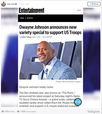 Johnson saját maga tette közzé a hírt hivatalos Instagram oldalán, miszerint egy szórakoztató TV műsort tervez, aminek lényege a tengerentúlon harcoló amerikai katonák szórakoztatása és megsegítése lesz. A "Rock the Troops" című egyedülálló show tematikájáról részletek egyelőre még nem szivárogtak ki, az már azonban biztos, hogy debütálását jövő évre tervezik. Az első adást minden valószínűség szerint az Egyesült Államok szövetségi emléknapján, a Veteránok napján láthatják majd, amit minden évben november 11-én tartanak.