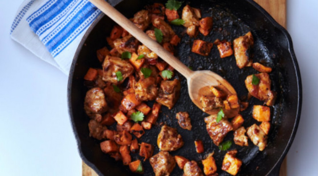 Vágj fel egy már előzetesen megfőzött csirkemellet (kb. 200 gramm), majd vágd kisebb kockákra, és tedd bele egy serpenyőbe, ami olíva olajat csepegtettél. Adj hozzá kb. 100 gramm kockákra vágott édesburgonyát, egy szintén kockákra vágott almát, valamint fahéjat, sót és borsot ízlés szerint. Készíthetsz egyszerre több adagot is, amit épp nem fogyasztasz el, azt tárold hűtőben!